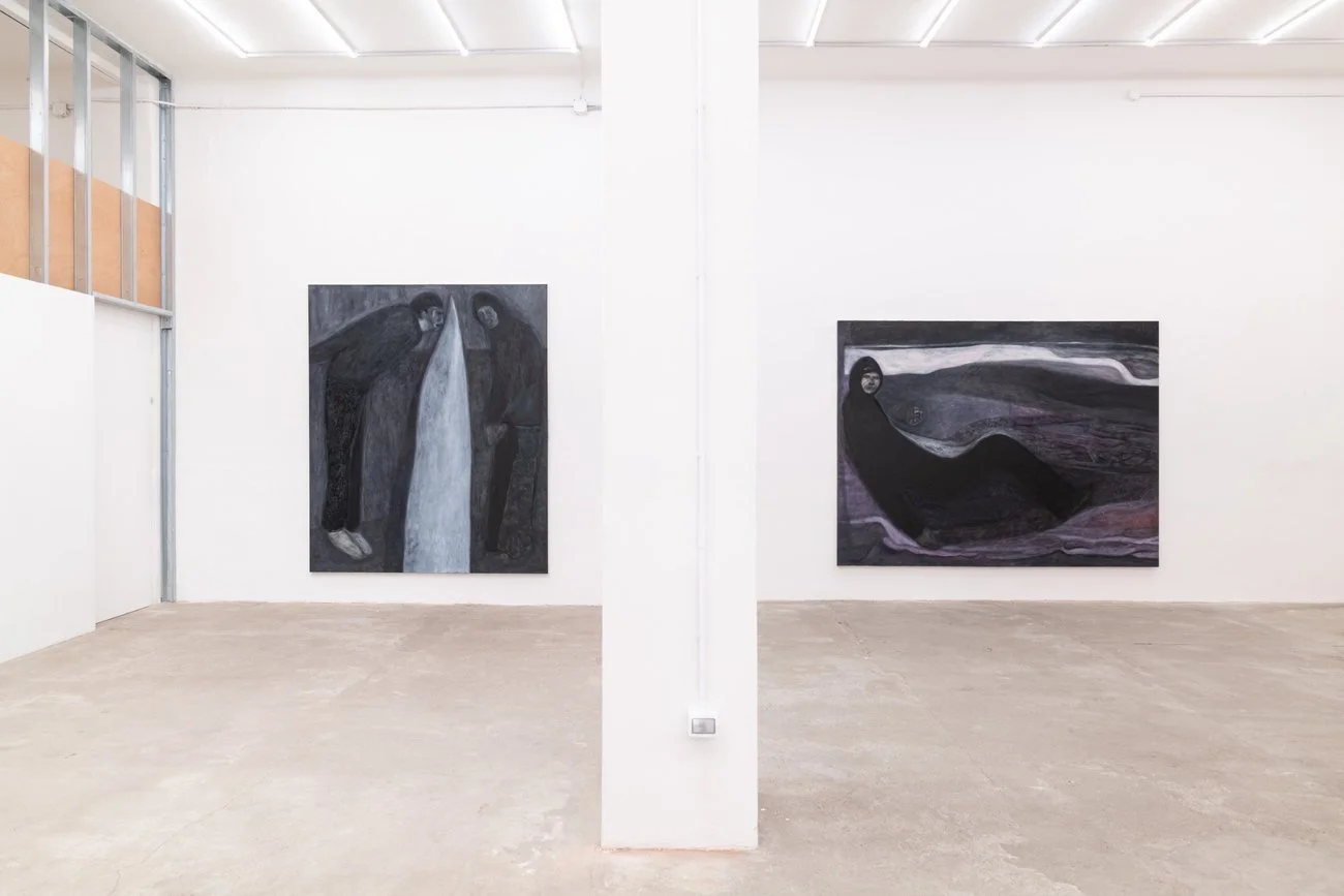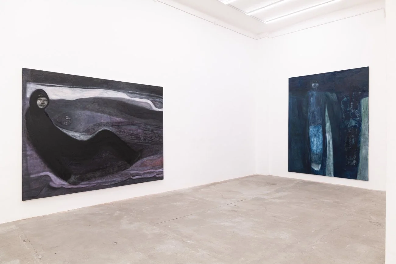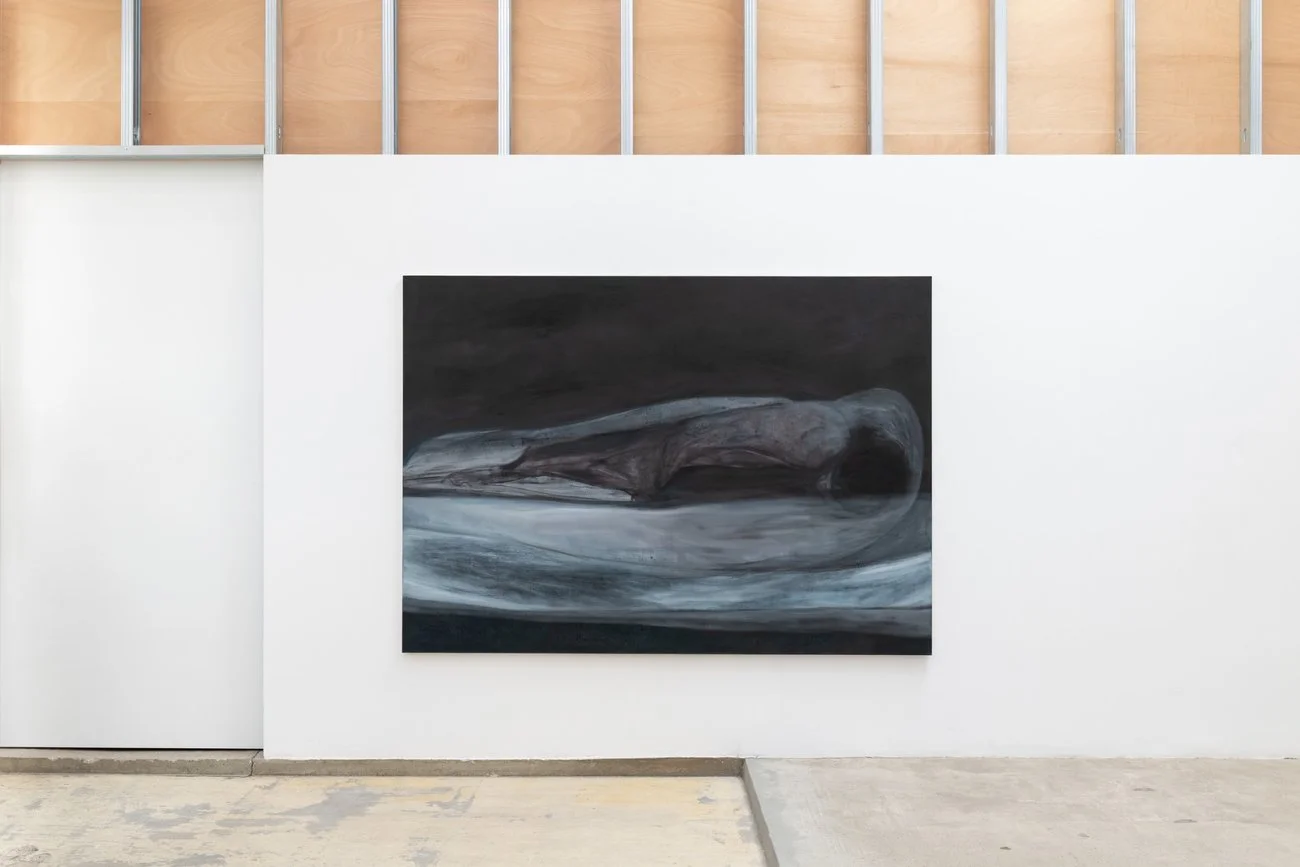 The exhibition text describes a space without coordinates, with no horizon or points of reference, an unsettling state of suspension where even the viewer's gaze seems unstable. Looking at the works, this sensation translates into bodies that do not orient themselves but seem to emerge from a sort of pressure, as if under a constant force that offers no relief. These forms also evolve from more defined shapes into almost ghostly presences. How do you describe your painting process and the construction of the image, both as a physical and perceptual experience, and as a possible existential condition?