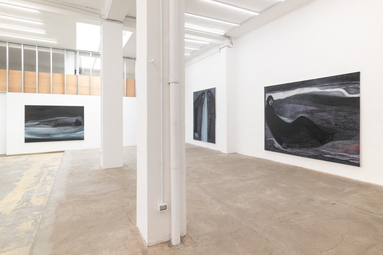 Over the last two years, I have studied black as a colour extensively; it was the main subject of the thesis with which I concluded my academic studies, so the choice of dark tones certainly stems from this and is also a direct consequence of what I wanted to convey in this exhibition. In some paintings, there are more than six black pigments, with different characteristics and variations that are not so subtle. I would not, therefore, describe my relationship with colour as ‘restrained’; on closer inspection, the colour palette is broader than a first glance might suggest.