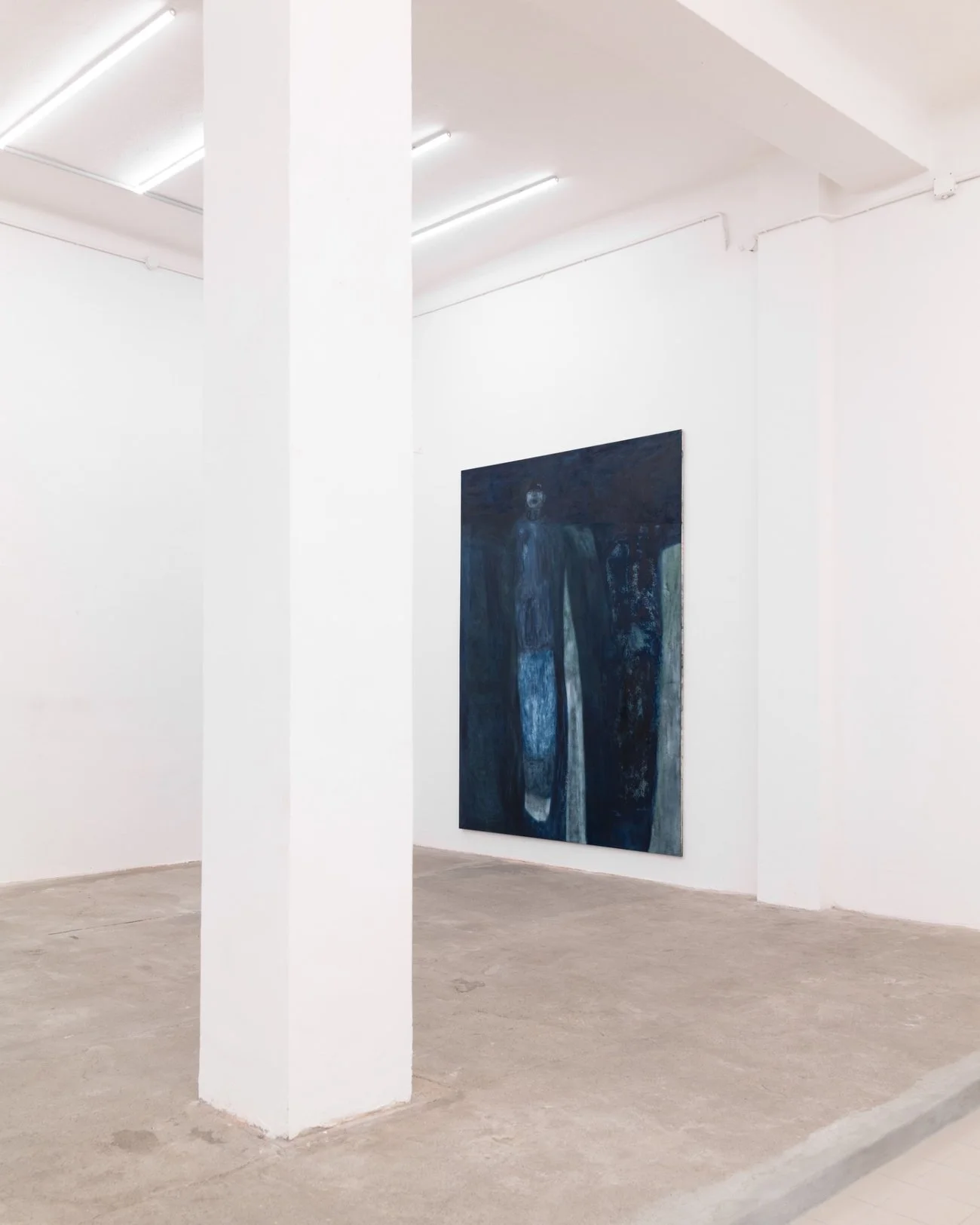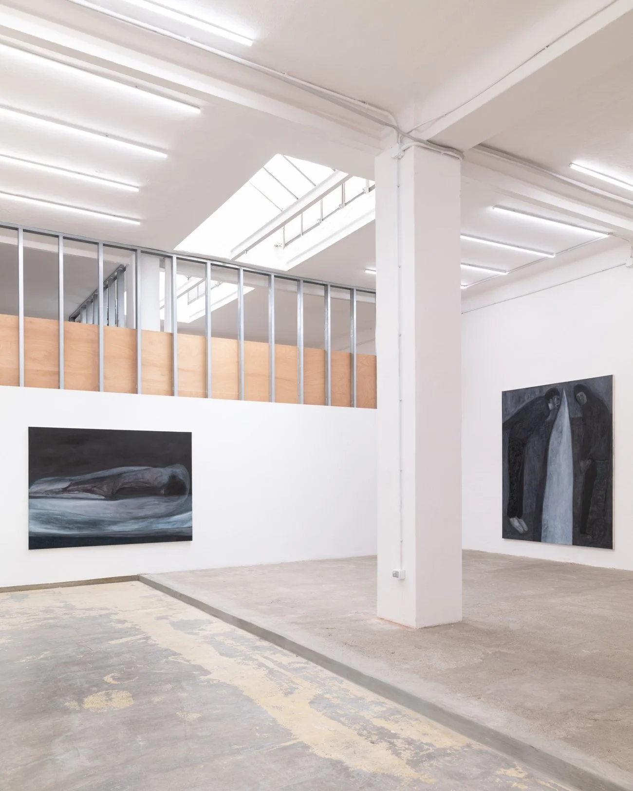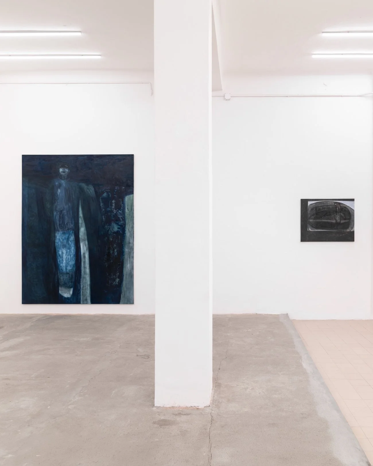 The space and the works interact in a state of suspension, yet they remain alive and present: the void is filled also by the large scale of the canvas. How did you conceive the dialogue between your works and the space?