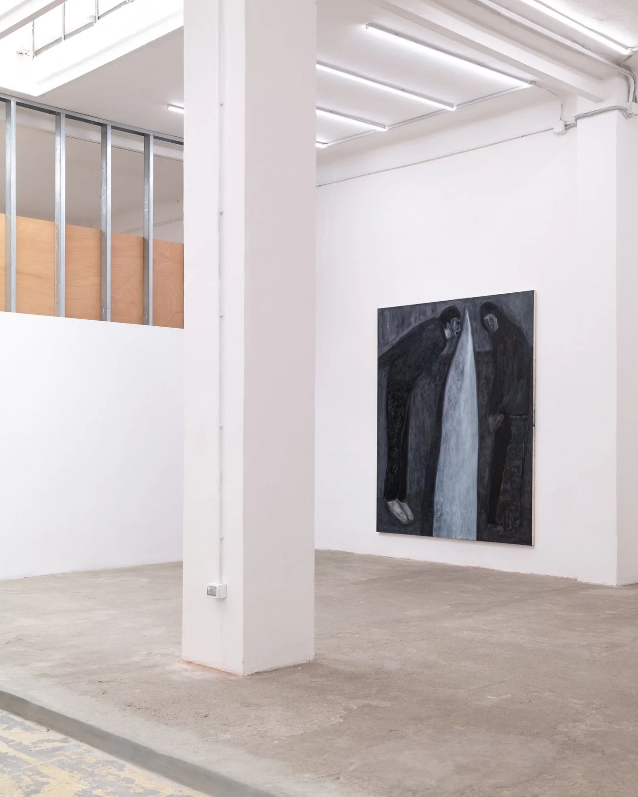 These vertical elements stem from a desire to create ambiguity within the painting. The fact that a threshold or a point of passage, despite being open, can represent both a physical and a mental obstacle is a condition I was seeking to capture within these works. In “Monoliti”, for example, the element that visually separates the two figures is, for me, both an impediment and a passageway in terms of communication. These forms recur in almost all the compositions, but in different ways, as in the case of “One of the Two”, where the element appears horizontally.