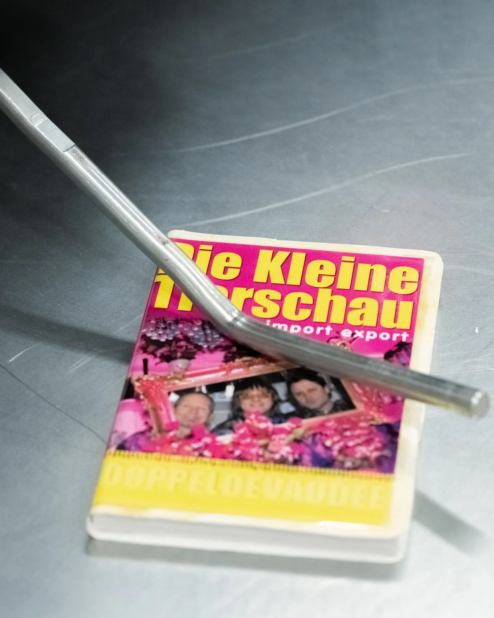 Gaedt built these objects over the course of more than four decades, and for much of that time they served a specific purpose: props for Die Kleine Tierschau, the band he co-founded and performed with across over 4,500 shows between 1981 and 2016. Inside the exhibition space at Galleria Montegani, they are recontextualized, removed from the stage, placed within walls, asked to hold meaning in stillness rather than spectacle.