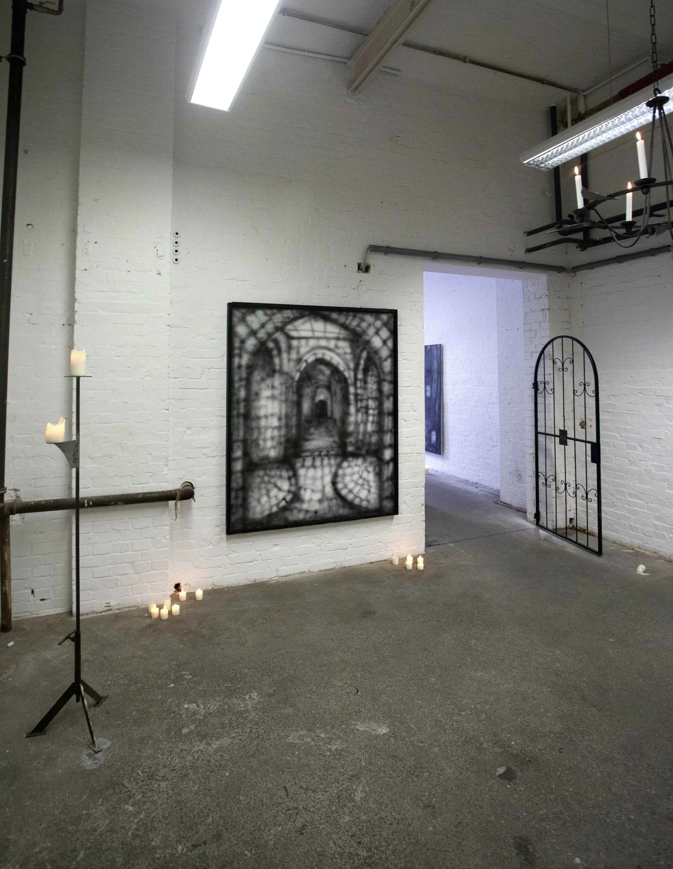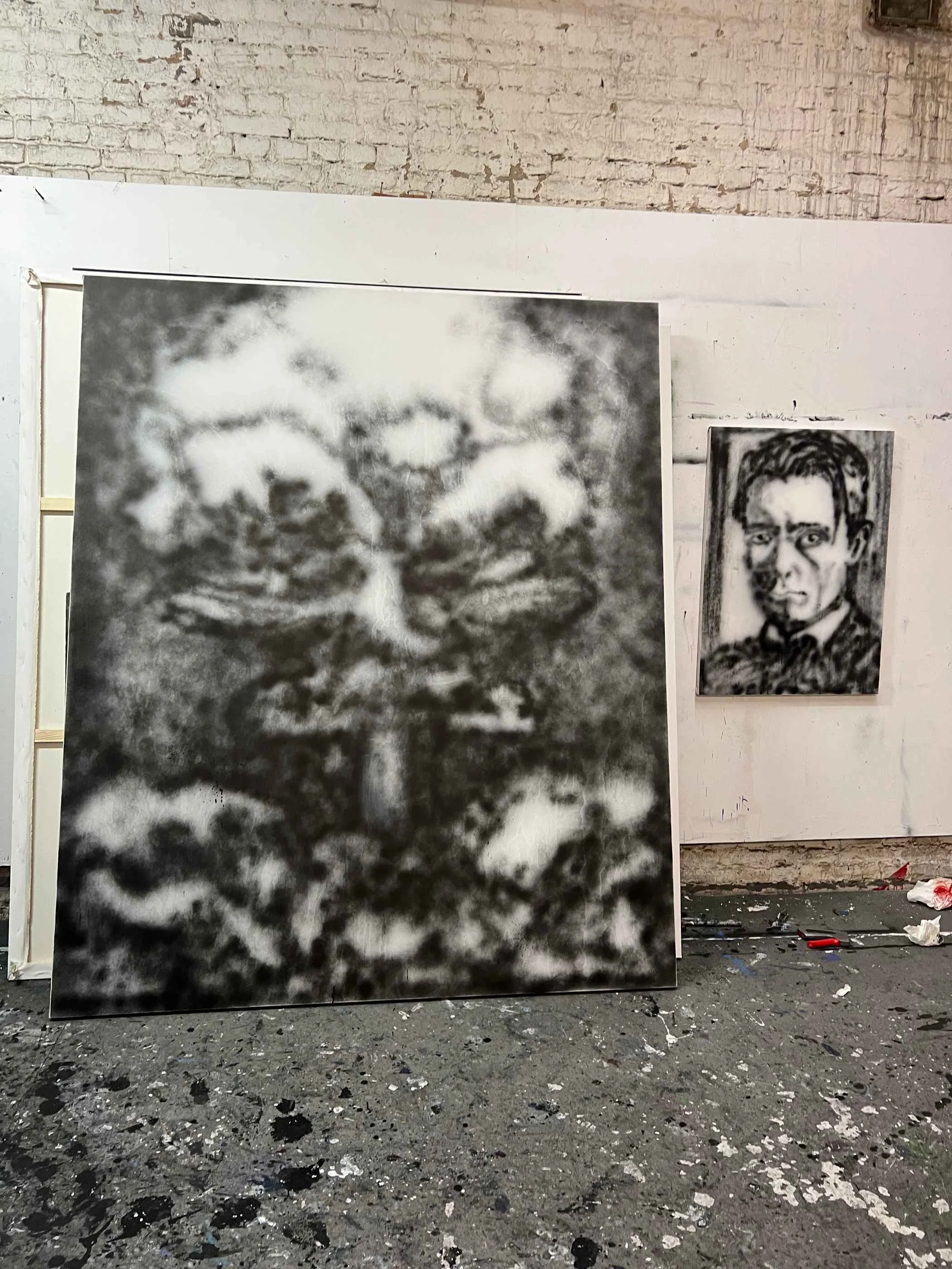 In Berlin, I arrived early 2020. The streets being empty and being somewhat anonymous definitely had an effect on how my paintings evolved. I started airbrushing in black and white around that time. Started visiting abandoned places in particular the soviet village hidden in a forest outside of Berlin, Vogelsang. We were doing a lot of offsite shows putting artworks in bunkers or glass houses or empty buildings. I was fortunate to meet people who believed in what I’m doing. The city makes it easy to escape into fantasy. Its stuck while everything else moves on at an accelerating speed. The things that happened here, historically and socially are still present.