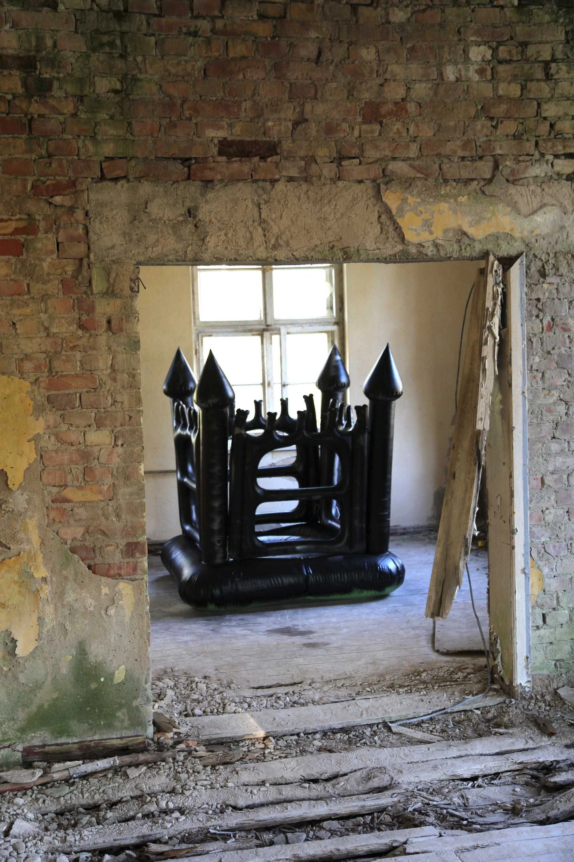 Sure, about Fjorskenstein. It’s pretty big, 260 x 200 cm in black/white. Its made with Indian ink and acrylic. I grew up in a village where there was a small castle made of rocks in the middle of a playground. We started smoking a lot of weed there. The environment was kind of proper and pediatric. The castle became the best place to escape. It came from a naive childhood fantasy, including the video games I grew up with.