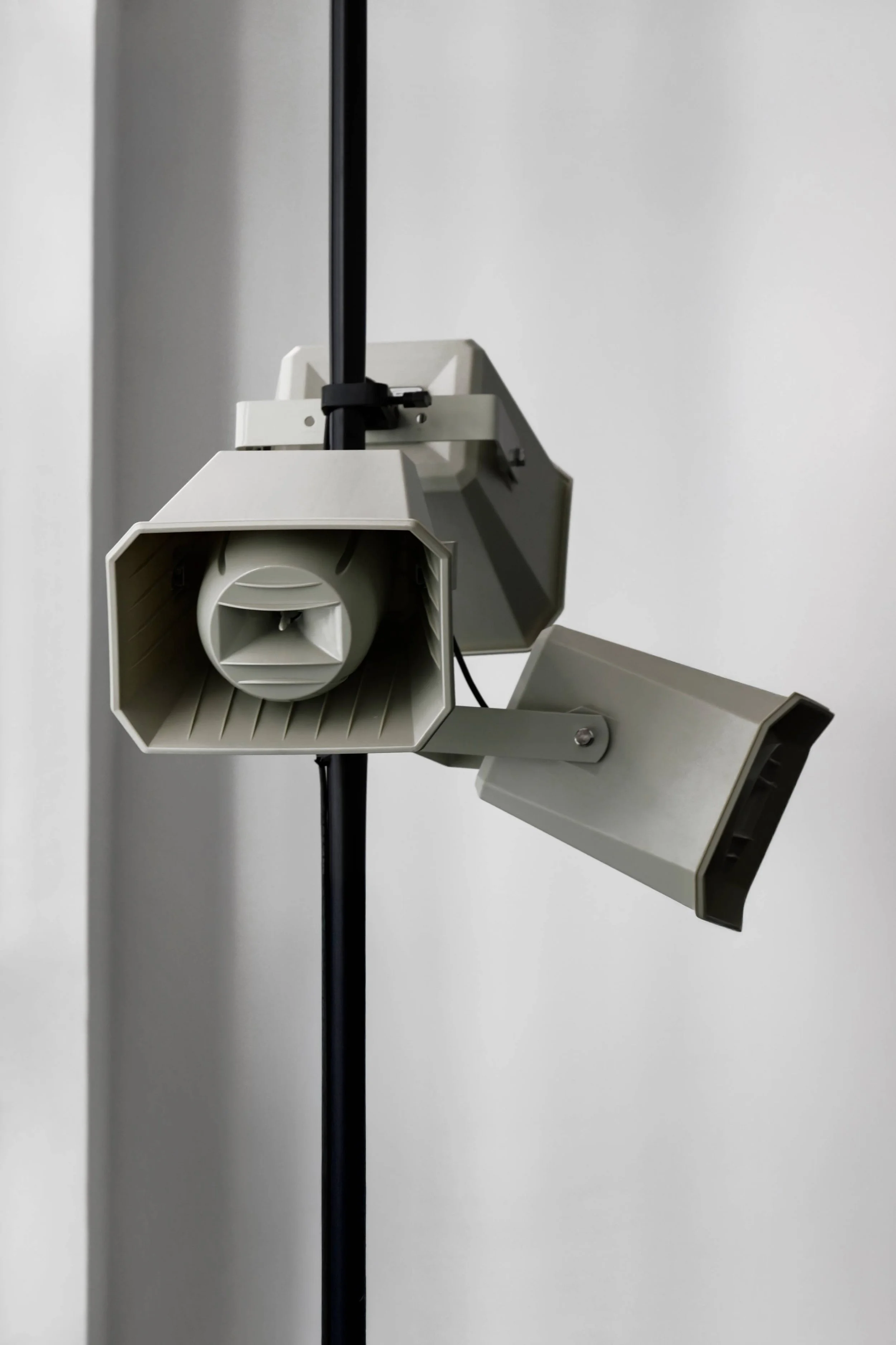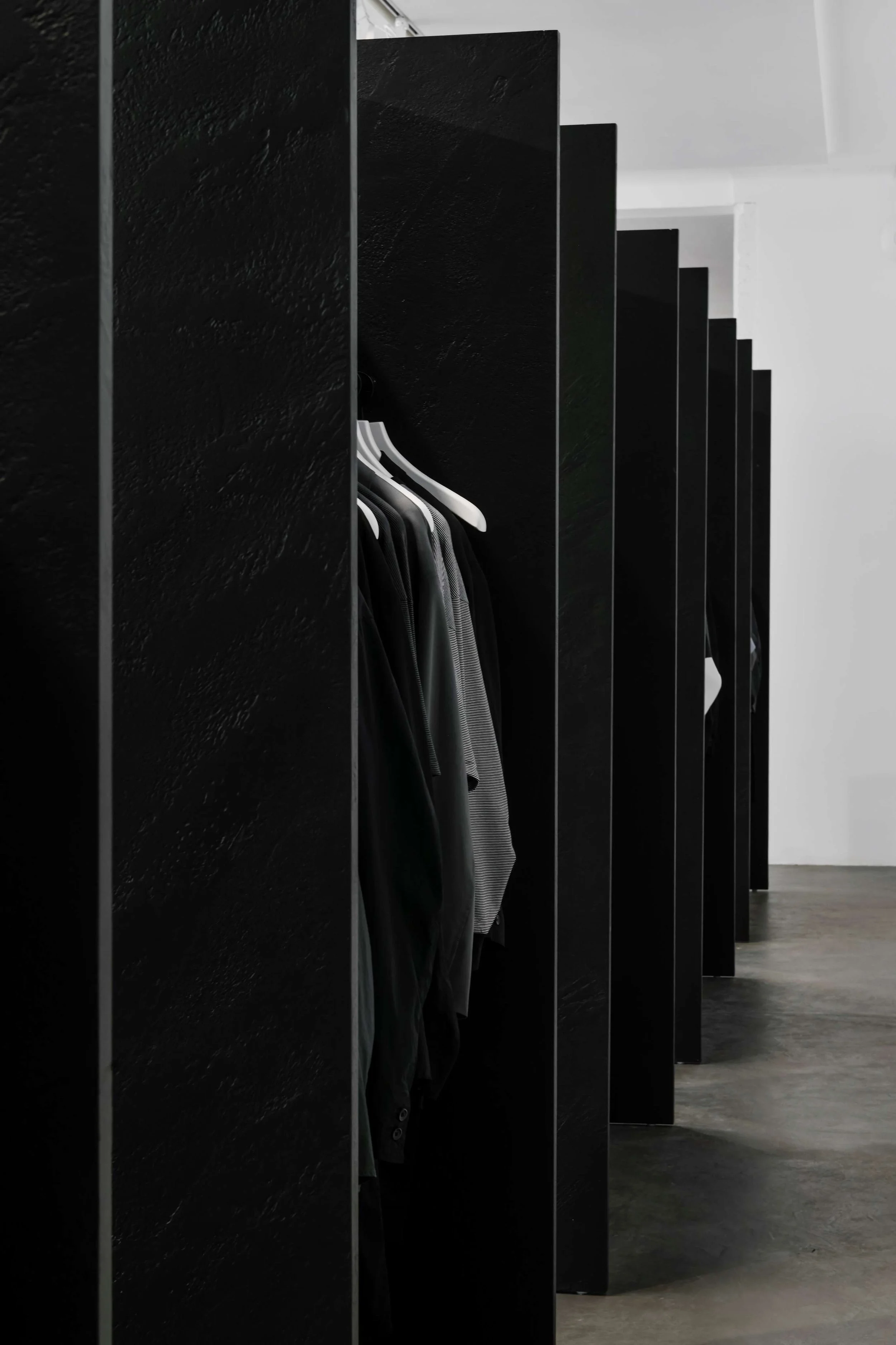 Thomas Subreville: The whole idea revolves around treating garments not as fixed designs, but as active documents of personal identity and collective symbolism. In this context, each blank piece of clothing is stored within a black monolithic structure. These containers work to neutralize any immediate aesthetic reading, encouraging the viewer to confront their own projections rather than consuming the garment purely as image. For me, this is what fashion should be about. Not prescribing identity, but holding space for it. The soundscape follows a similar logic. It is deliberately non-musical. It’s composed as a sonic monochrome made only of white noise and drifting sine-wave frequencies. As a neurodivergent person, I often use pure-tone frequencies as a kind of auditory anchor for focus and imagination. Much like the physical space, the soundscape is shaped by the listener’s attention or inattention, conversations, and associations. It plays through a series of siren speakers, not originally intended for music, but for alarms and public announcement messages. Both materials and sound are stripped of explicit symbolism or figurative cues. They’re not there to explain the work, but to create conditions in which people can interpret it for themselves.