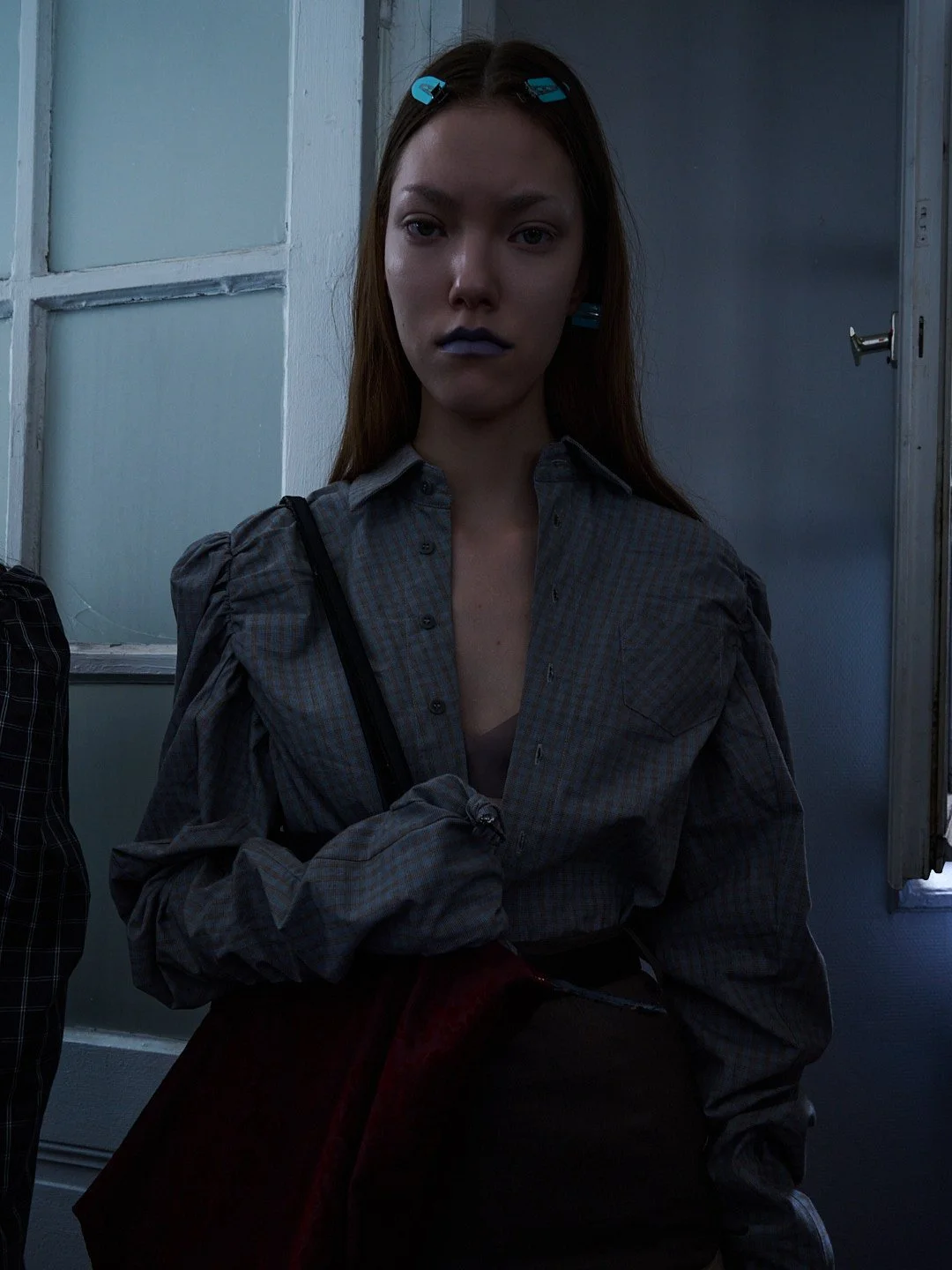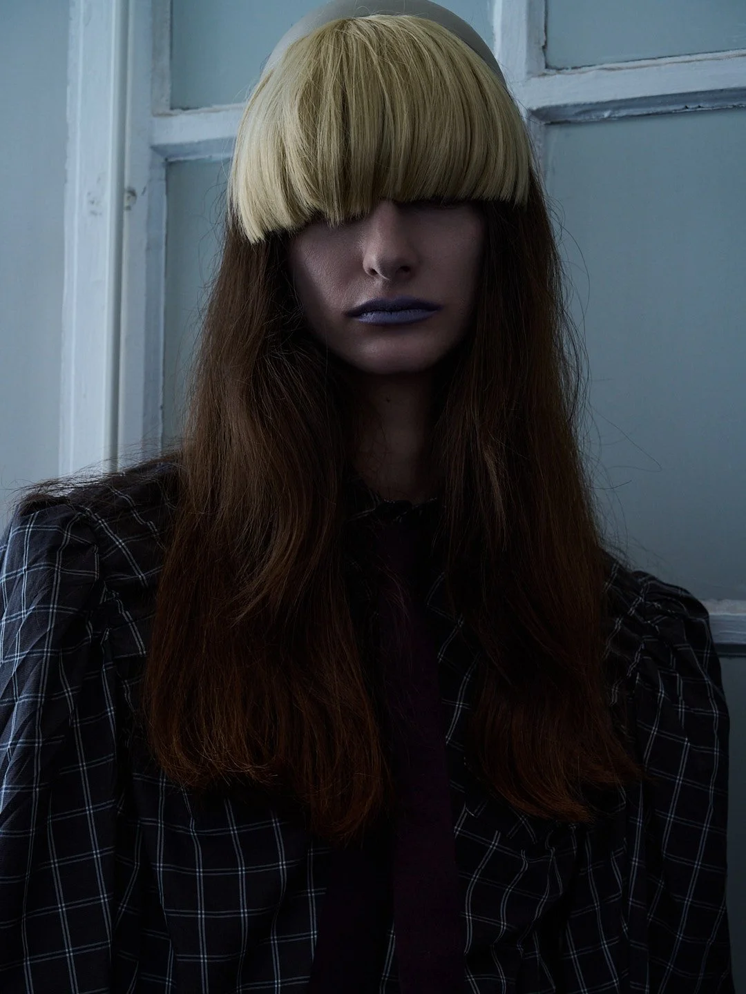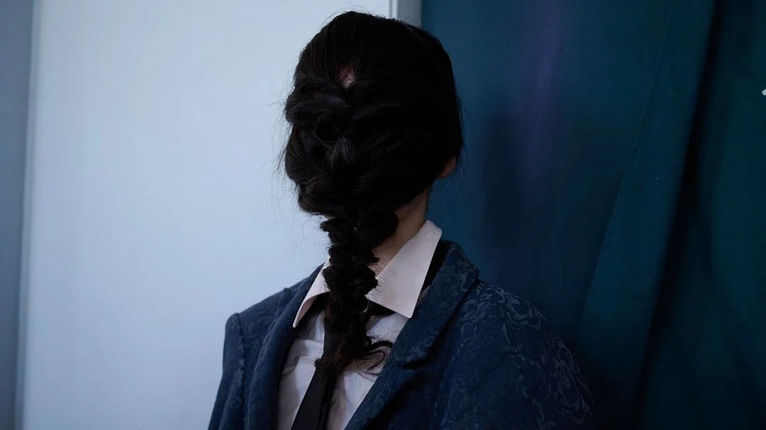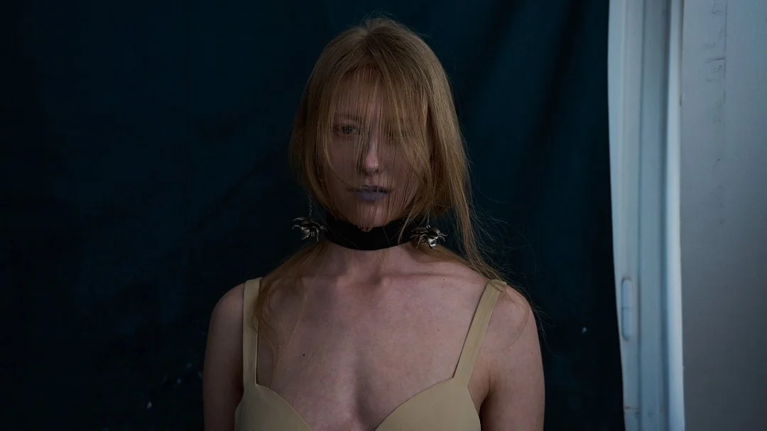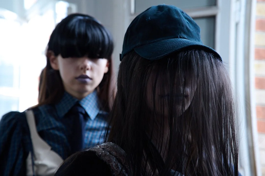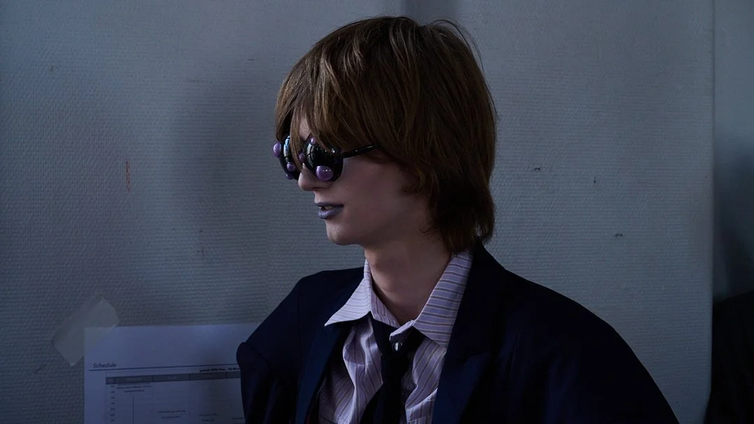 For Autumn/Winter 2026, grounds continues its journey into what Sakabe calls “ergonomic surrealism.” The collection takes a wild ride through uncanny valley, drawing on Japanese horror lore, silhouettes designed to unsettle, with classic tailoring and kimono shapes distorted to feel unfit for standard human proportions, stained materials, and accessories like giant insectoid eyewear.