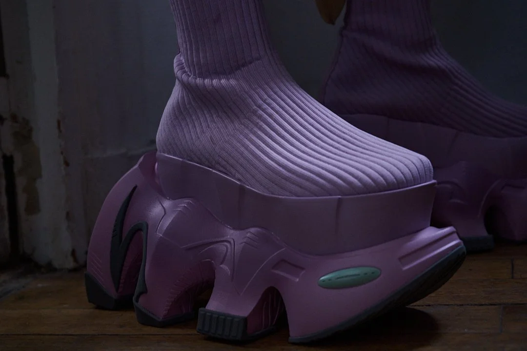 Grounds-signature transparent soles and bat-winged platforms remain central to the vision, alongside Sakabe’s evolving idea of “new luxury”, one built not on heritage or heritage codes, but on what he describes as “some humor and intelligence.”