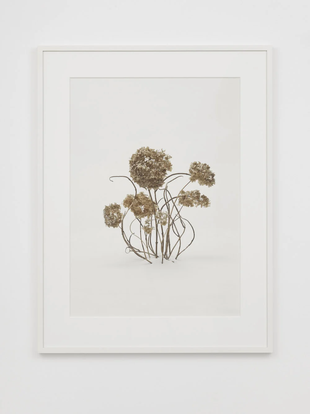 A series of untitled images are reminiscent of scientific anatomical plant based photography, the stark white backdrop of snow highlights the detail of intricate and delicate plants and flowers. Focusing on the forms and silhouettes created by the flora and fauna; simply by nature the soft curves of flowers are contrasted with sharp lines of stalks. Casebere explores this natural contrast through these simple yet effective depictions of nature.