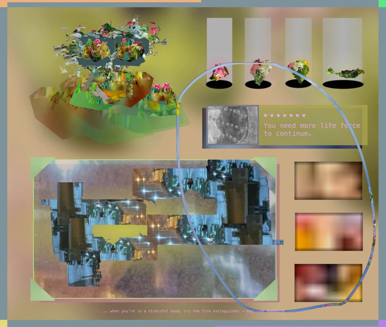 From interactive paintings to wallpapers mimicking Ikebana flowers compositions, Frazer’s digital art carries the poignant political discourse focused on not narrowing one’s scope of action in movements prefigured by somebody else, to not follow the existing rules of an environment all users could, should and must be the Architects of.