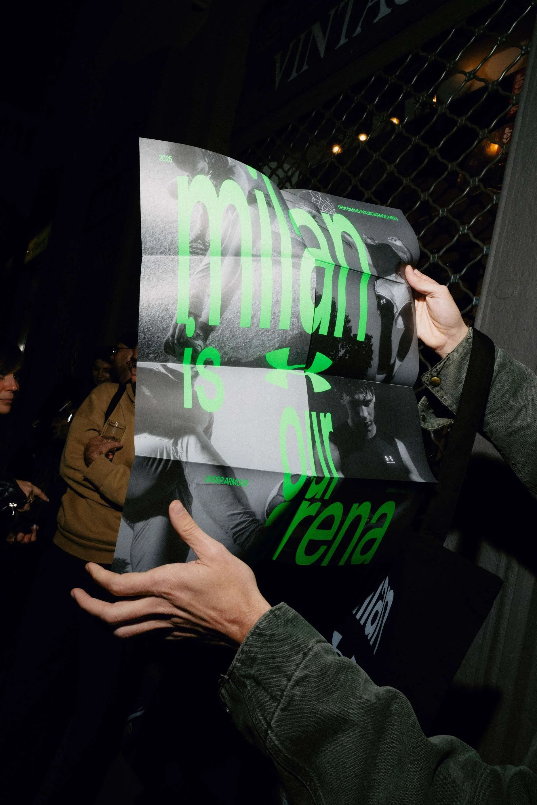 The launch of Under Armour’s new Brand House in Milan have been across two places: the store in Corso Buenos Aires 56 and the nearby Bene Bene Bar. The evening united the city’s creative and athletic communities through a mutual belief of energy. At Bene Bene, the campaign visuals were projected onto the walls, while guests received a limited fanzine produced by Circular Agency, with the graphics of Outline Studio. The publication featured images from the campaign and the graphic reinterpretation of the brand’s vision. Drinks, music, and dialogue stated an atmosphere where sport, culture, and fashion met on equal ground.