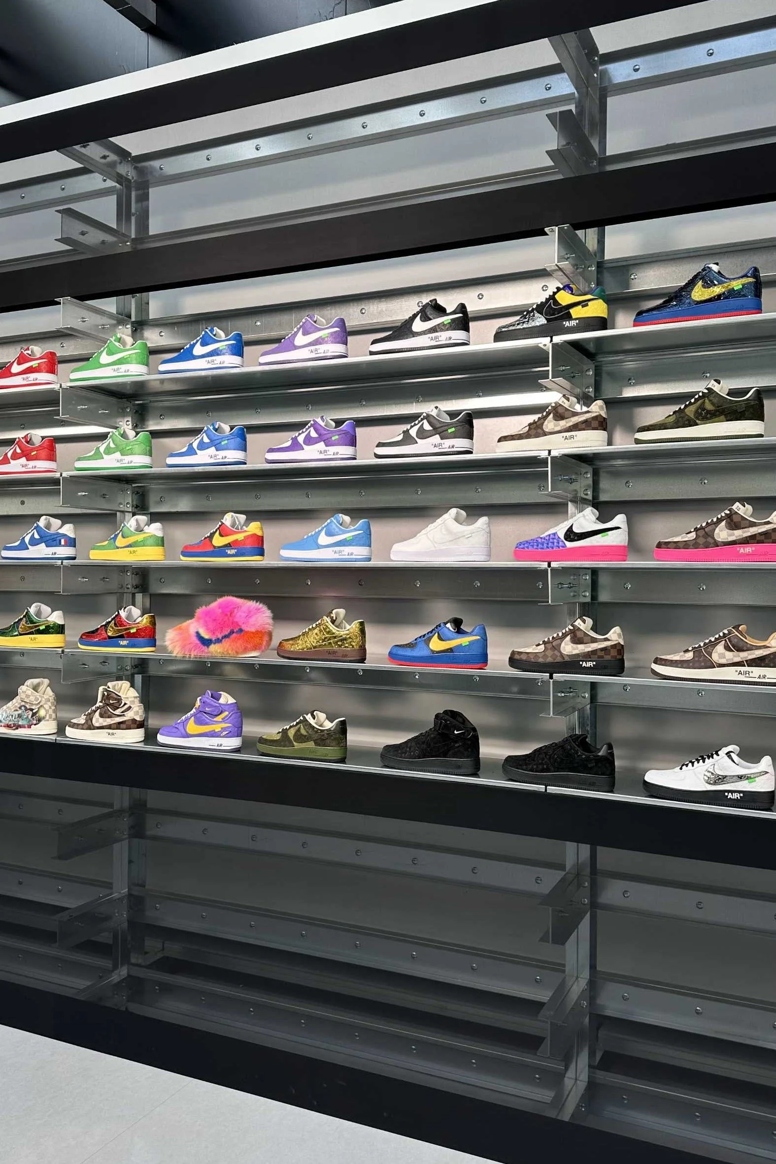 When the Nike shelves appear, the nostalgia spikes. Those designs once made for consumption now serve as relics. The display does not celebrate pure perfection. It honors the minute adjustments, the small signatures, zip ties, inside-out seams, bold text in quotation marks. Those markers became Virgil’s grammar. Seeing them up close reminds me of Sundays in high school, of saving photos, of wanting those shoes in grey markets, hoping for drops. The longing, the hunt, the thrill.