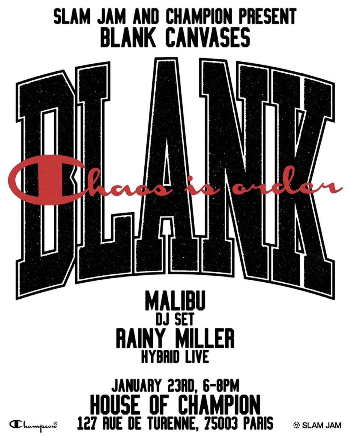 Hybrid live set by @Rainymiller and dj set @Malibu. Come early. RSVP required. #slamjam #championeurope