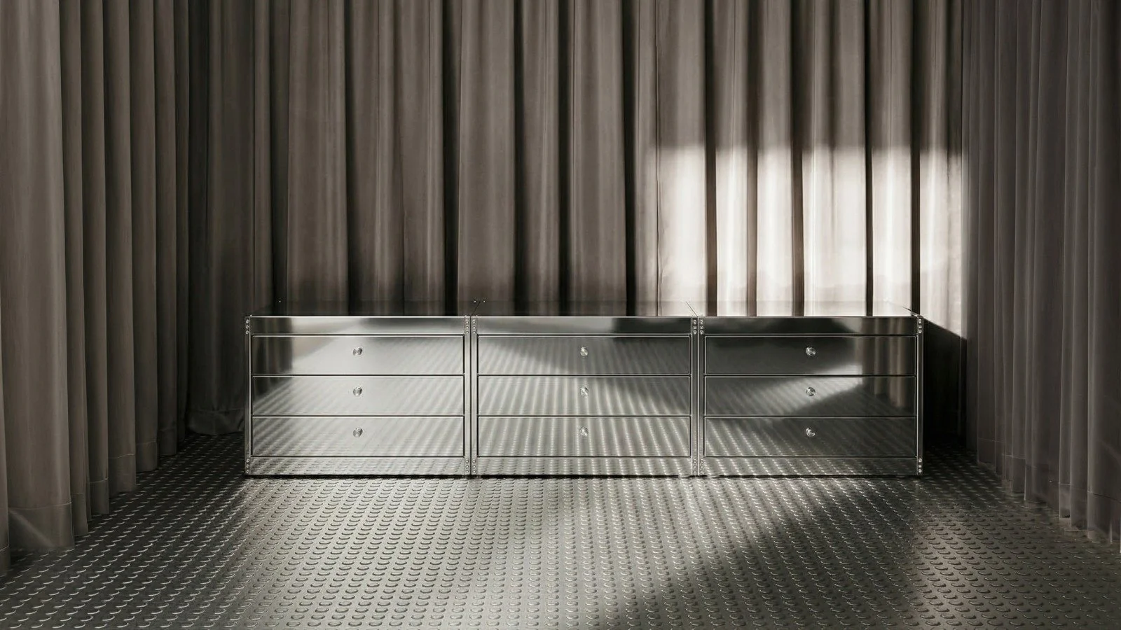 NM3 builds everything from stainless steel, using laser cutting, bending, and dry assembly. The material stays untreated, its surface variations and natural marks left as evidence of process. Founded in Milan by Nicolò Ornaghi Francesco Zorzi and Delfino Sisto Legnani, the studio holds a consistent position: the ordinary, taken seriously, contains extraordinary possibility.