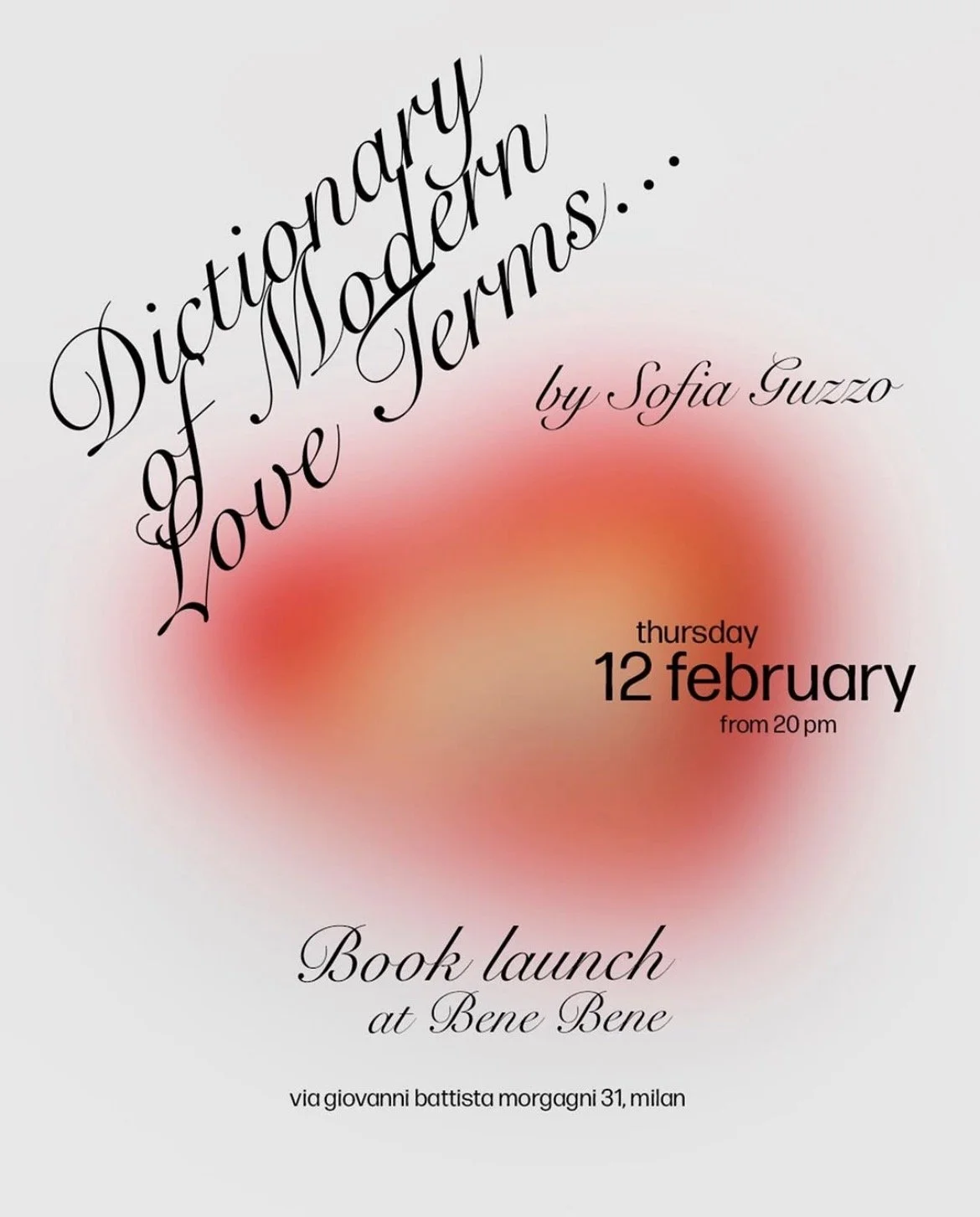 Book launch of the ‘Dictionary of Modern Love Terms’ by Sofia Guzzo @sofiaguzzo__ on February 12th at Bene Bene bar from 8pm