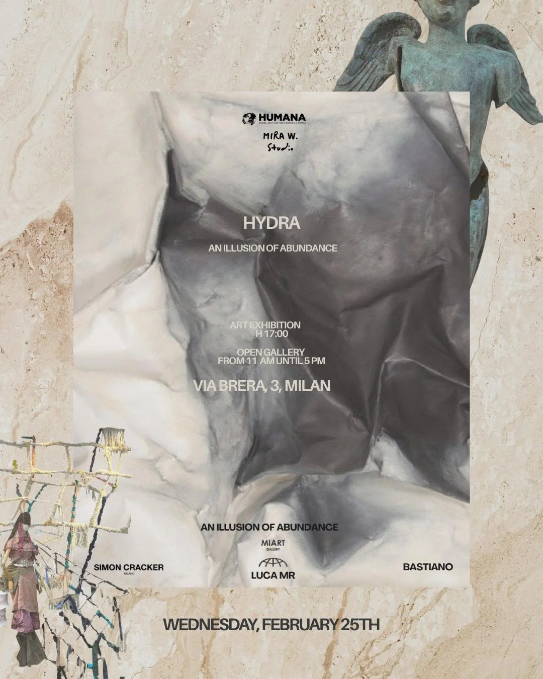An Illusion of Abundance is a multidisciplinary awareness project where art meets fashion to question ultra-fast fashion, overproduction, and contemporary consumption models. Bringing together fashion schools, artists, and the nonprofit Humana People to People Italia, the project unfolds as a city-wide, immersive journey across installations, exhibitions, talks, and live performances during Milan Fashion Week.