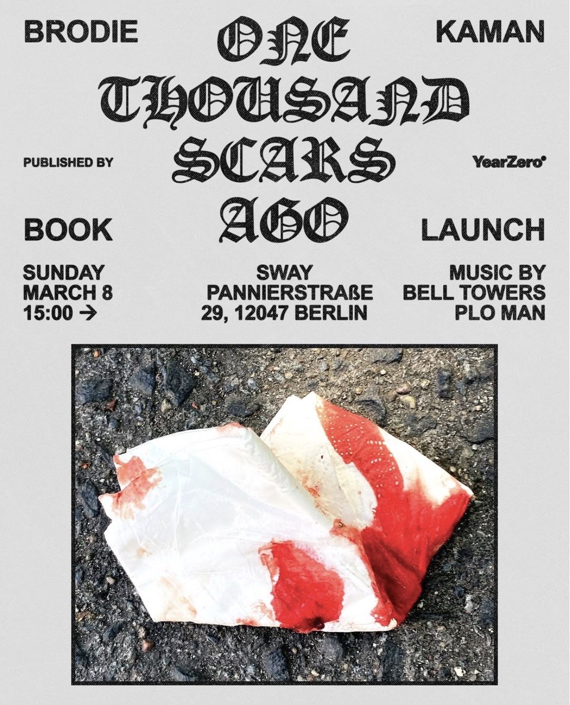 ONE THOUSAND SCARS AGO Sunday, March 8, 2026 3:00 PM 7:00 PM 15:00 19:00 SWAY berlin (map) Google Calendar ICS Berlin 08.03.26 at @bar____sway with @rbt69 and PLO man 📕 👀 @brodie_kaman