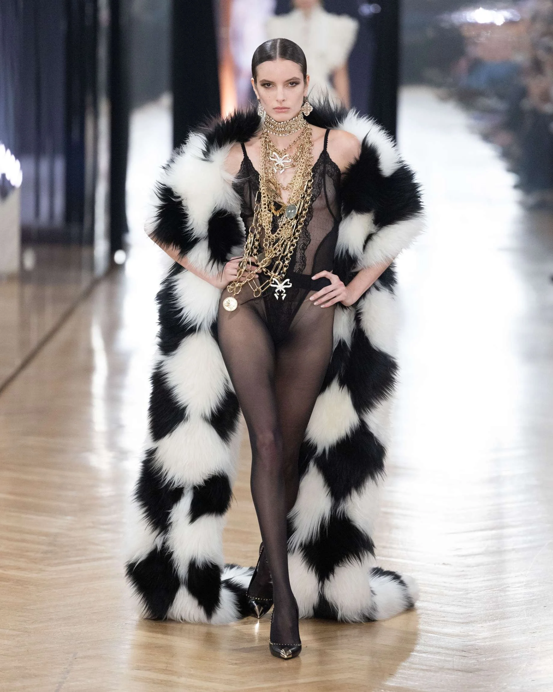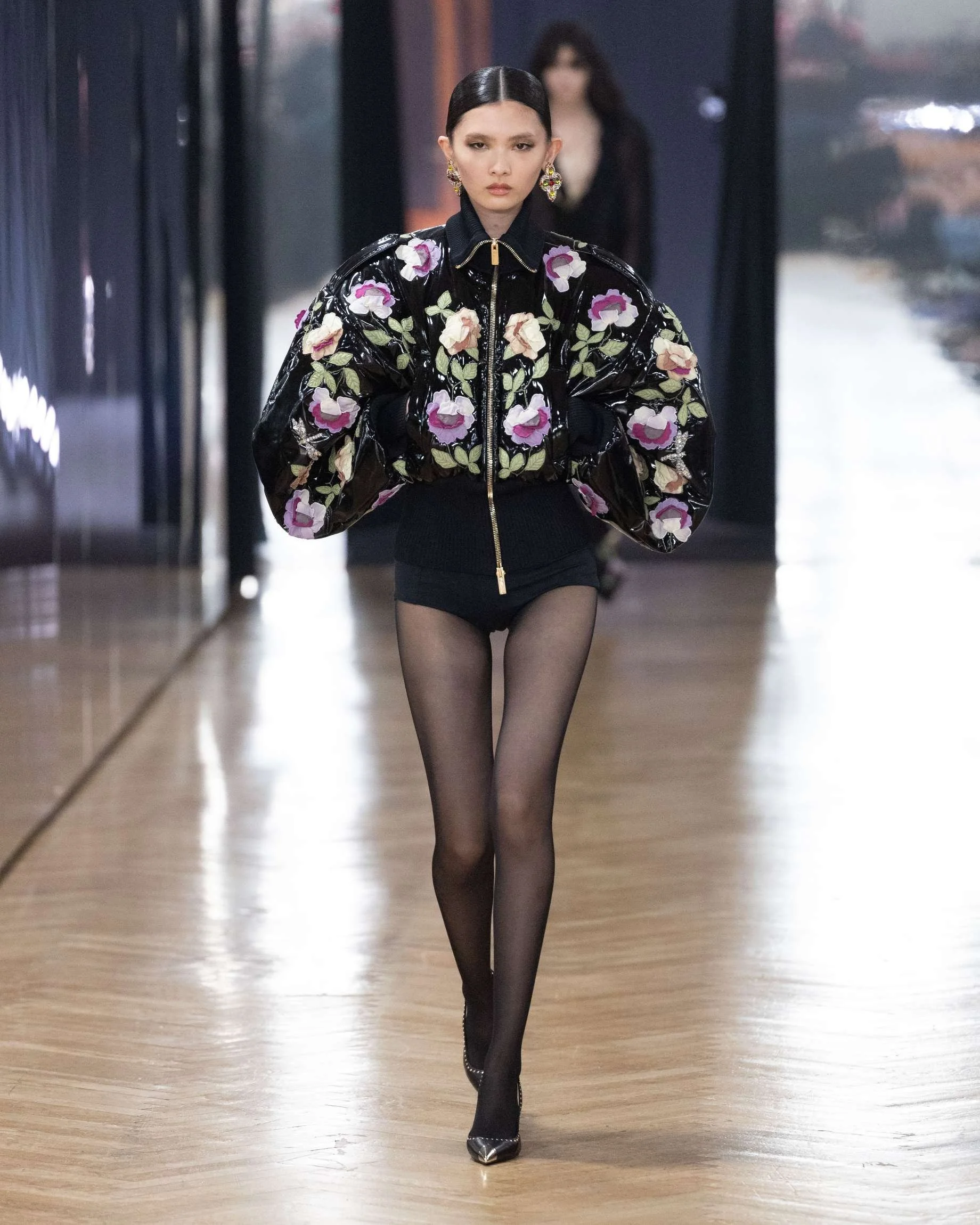 The diva, in the Italian imagination, has always been more than a woman. She is a condition. A climate. Blumarine FW26 takes this understanding seriously, and runs with it, all the way to Venice. Under Creative Director David Koma, the collection becomes an act of mythmaking rooted in the House's own photographic archive. The Helmut Newton collaborations loom large here: that particular quality of desire shot through with authority, of femininity as spectacle and as threat. Koma channels this into something architectural. Silhouettes arrive voluminous and precise, theatrical and tightly controlled: balloon-skirt minis, sculptural bombers, crinoline tiers, boned jackets cut in the shadow of Harlequin's diamond geometry.