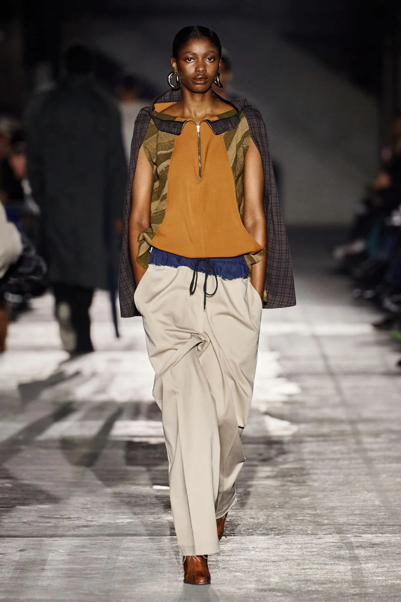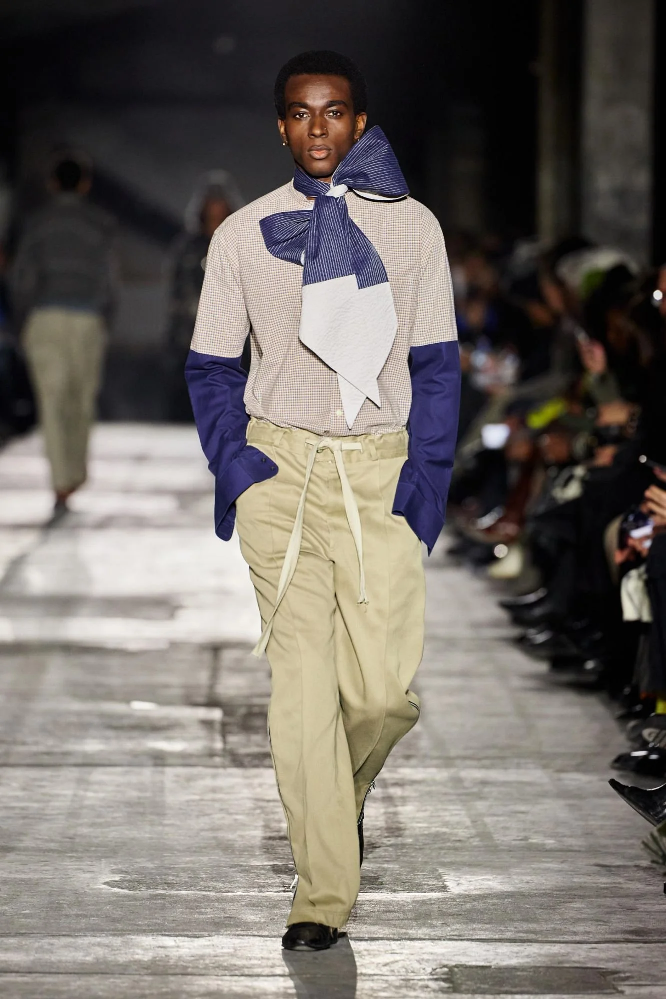Designer Bobby Kolade focuses on how second-hand garments from the Global North are reclaimed and transformed by local communities, such as boda boda riders, who adapt clothing through creativity and necessity. Wide collars, flared trousers, and liberated shapes evoke autonomy and self-determination, linking historical freedom to modern identity.