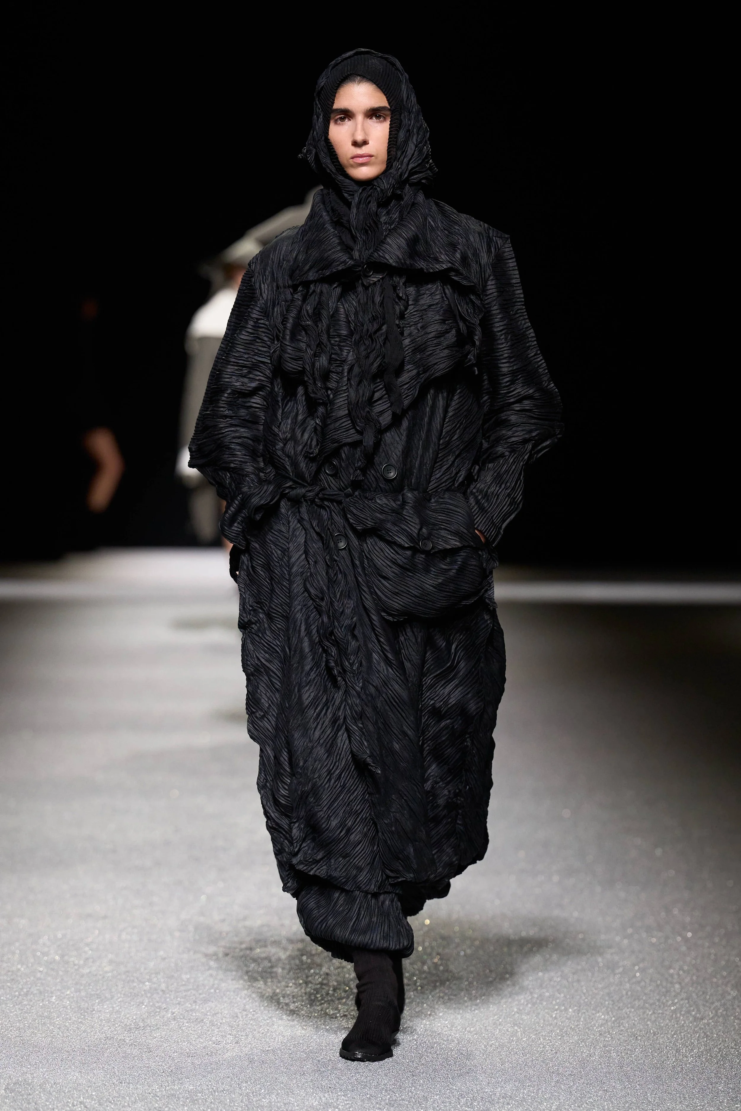 Issey Miyake Fall Winter 2026, designed by Satoshi Kondo, explored the idea of creation as a balance between intention and chance. Inspired by natural forms shaped over time, the collection proposed clothing that seemed almost unfinished, as if garments were still evolving while worn.