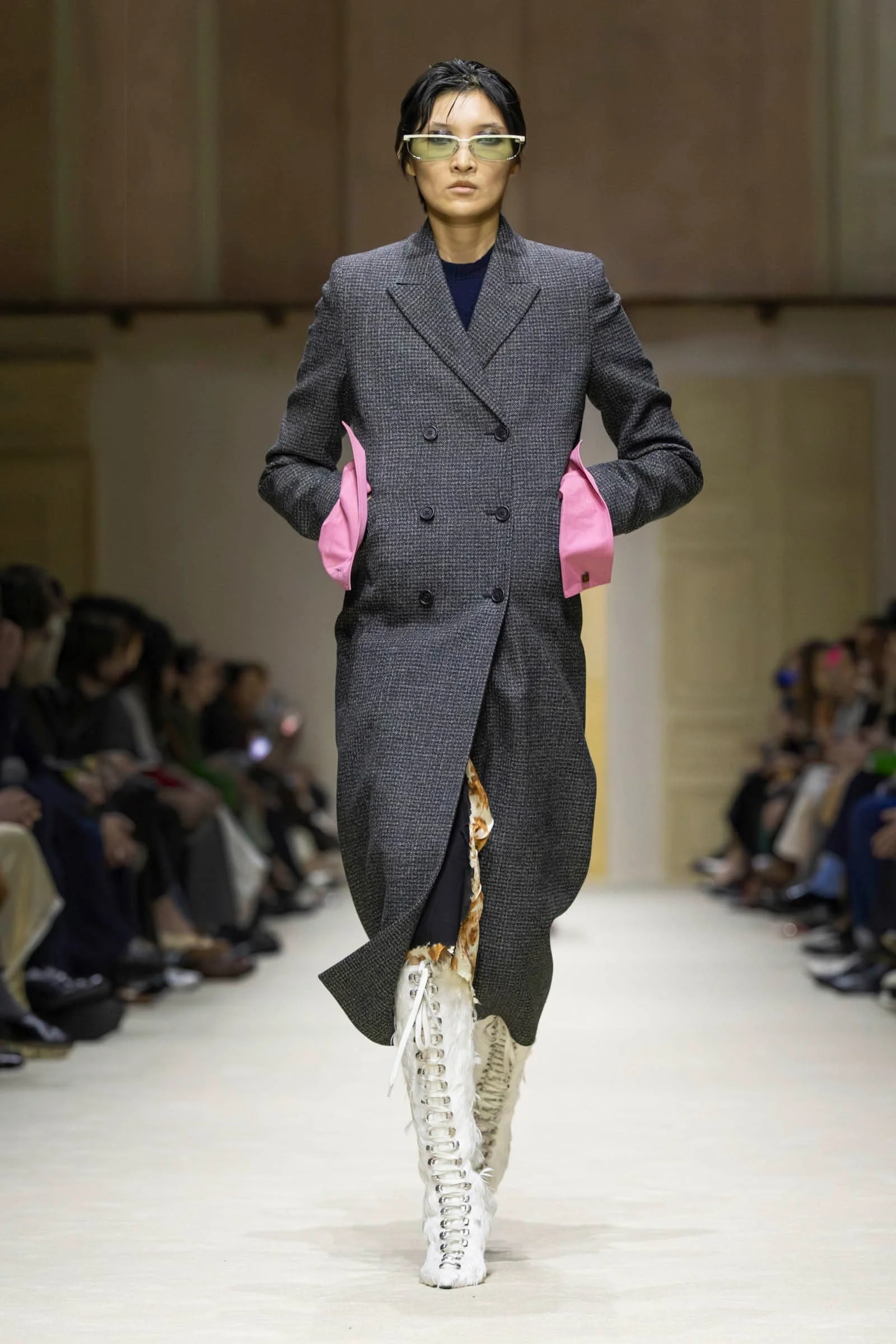 The show featured just 15 women modeling 60 looks, with layers intentionally removed over successive walks to reveal hidden combinations underneath. This approach highlighted individuality, self-determination, and the fluidity of personal style. Tailoring intersected with sportswear, embroidered satin dresses, and archival pieces embedded in minimal forms, creating unexpected juxtapositions that felt both familiar and new.